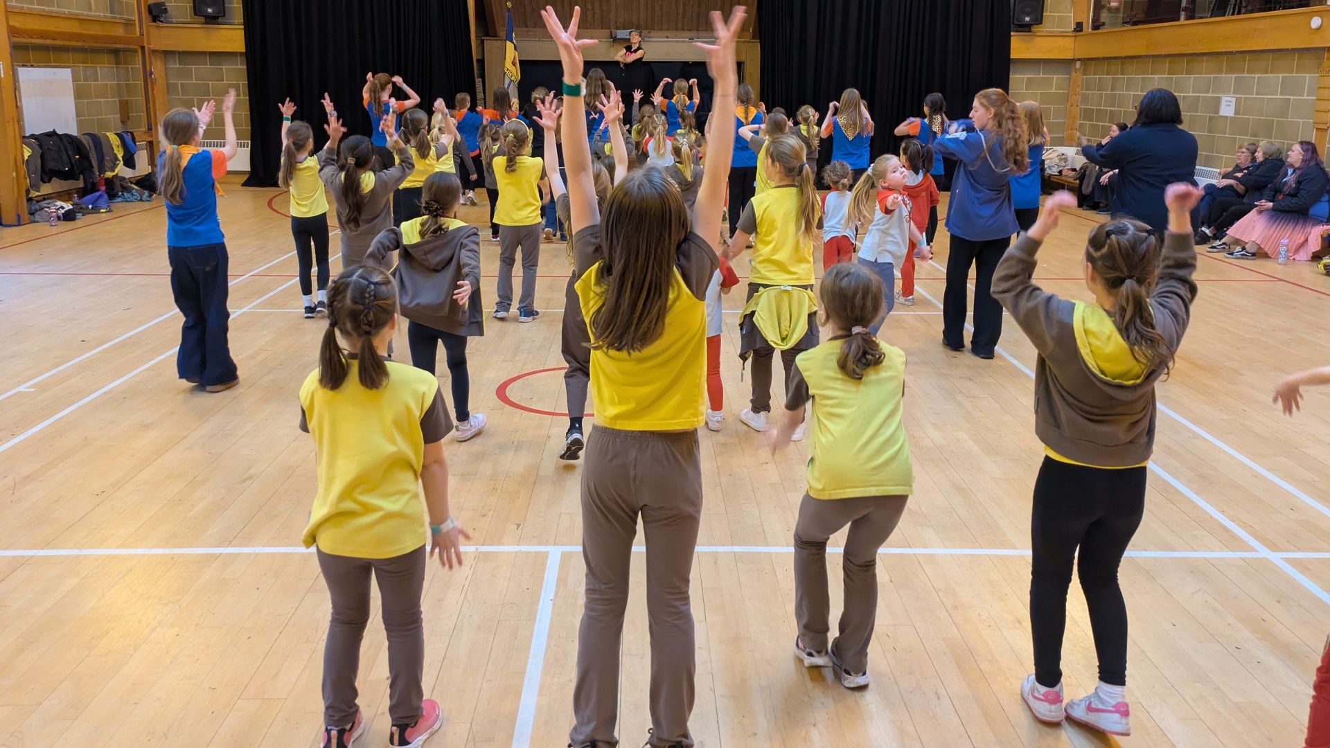 They learned to sing Katy Perry’s hit song “Roar” – guided by Dave from Rock Choir. The dancing activity was led by Susy Puckett, the theatre school manager at Leatherhead Theatre. Susy guided Rainbows, Brownies and Guides through a lively routine to the song “We’re all in this together” from High School Musical.